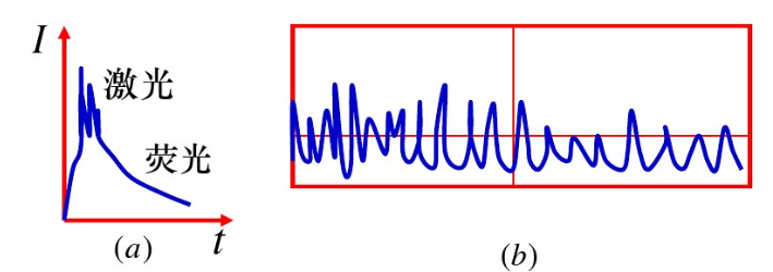将普通的固体激光器输出的脉冲用示波器进行观察,发现其波形不是平滑的光脉冲,而是由许多振幅、脉宽和间隔做随机变化的尖峰脉冲组成,称为激光驰豫振荡,如下图所示: