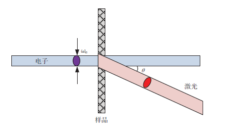 上式中\(\omega_{e}\)为电子斑尺寸,\(\theta\)为激光脉冲和电子脉冲之间的夹角,c 为光速。