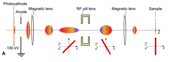 这个透镜的作用是:利用传播电子具有线性啁啾的特性,在腔体内加入一个高频的电场